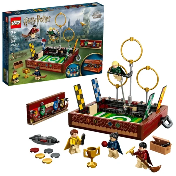 Малышу понравится собирать этот волшебный конструктор LEGO Harry Potter для квиддича Игрушечный сундучок (76416), который открывается, открывая игровое поле для квиддича, баннеры дома Хогвартс и все необходимое для игры в квиддич в одиночку или для 2 игроков.Отличный подарок для поклонников Гарри Поттера в возрасте от 9 лет. В набор входят минифигурки Гарри Поттера, Драко Малфоя, Седрика Диггори и Чо Чанга, а также 10 дополнительных голов (6 разных оттенков кожи) и 10 дополнительных причесок для создания уникальных игроков.. В коробке также содержится оборудование для проведения 3-х различных игр в квиддич: забросьте квоффл через кольца ворот, запустите бладжеры в отбивающего и поймайте Золотой снитч. Когда игра закончена и вручен кубок дома, все упаковывается в багажник, чтобы дети могли брать его с собой для игр в дороге.Количество деталей: 599 шт.Размер упаковки: 5,65 * 38,2 * 26,2 см.Вес: 0,74 кг.