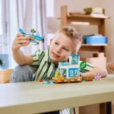Игровой набор «Летайте с Dodo Airlines!» LEGO Animal Crossing (77051) помогает детскому воображению подняться в небо. Девочки и мальчики в возрасте от 7 лет отправляются исследовать новый остров на гидросамолете LEGO, как в видеоигре Animal Crossing. Этот набор со множеством функций позволяет детям разыгрывать свои собственные истории в знакомой обстановке Animal Crossing. Как и в видеоигре, тут в аэропорту есть ведущий на берег причал, диспетчерская вышка и открывающиеся оранжевые ворота. Когда девочки и мальчики соберут игрушечный самолет, билет позволит путешественникам подняться на борт. Дети крутят пропеллер гидросамолета и представляют, как отправляют минифигурки пилота Уилбура и Тэнджи на новый остров. Инструкции для этого набора есть в приложении LEGO Builder, где дети могут увеличивать и поворачивать модели в 3D и узнают, как настроить флаг аэропорта. Игровые наборы LEGO Animal Crossing — это веселье в мире знакомой видеоигры прямо в руках творческих девочек и мальчиков.