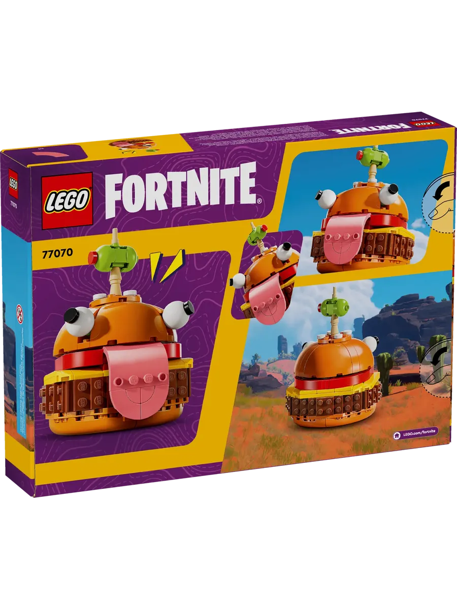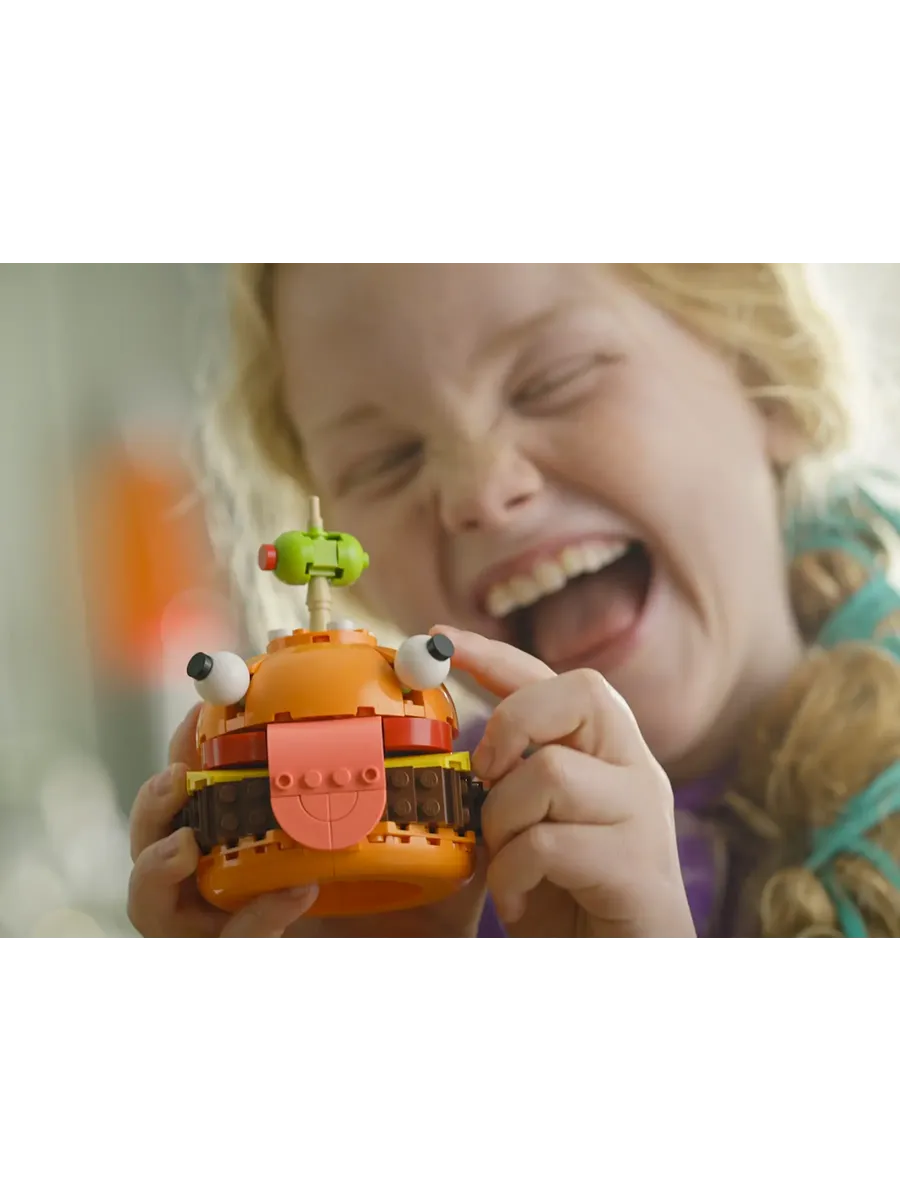 Основанный на видеоигре набор позволяет поклонникам создать модель для демонстрации, изображающую ДаррБургер – знаменитый талисман закусочных из вселенной Fortnite. Юных геймеров ждет масса удовольствия и триумф, когда соберут модель со всеми ее деталями, в том числе мгновенно узнаваемыми глазами, языком и оливкой на зубочистке. После завершения сборки модель из видеоигры превращается в классную коллекционную игрушку для украшения интерьера – ребенок может с гордостью демонстрировать ее в своей комнате. Включающий в себя 193 детали, это отличный подарок для детей, которые любят игры, и для поклонников Fortnite любого возраста, и собранная модель будет напоминать об удовольствии от игры, где бы вы ее ни поставили.