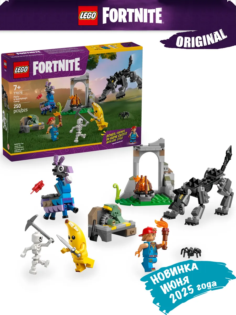 Добро пожаловать в мир LEGO Fortnite! Набор «Лагерь Банана и Ремонтницы» (77075) — отличная новинка июня 2025 года для юных поклонников видеоигр и конструкторов. Он идеально подойдёт детям от 7 лет, которые хотят воссоздать знакомые испытания из LEGO Fortnite Odyssey и придумать собственную историю выживания в стиле культовой игры.