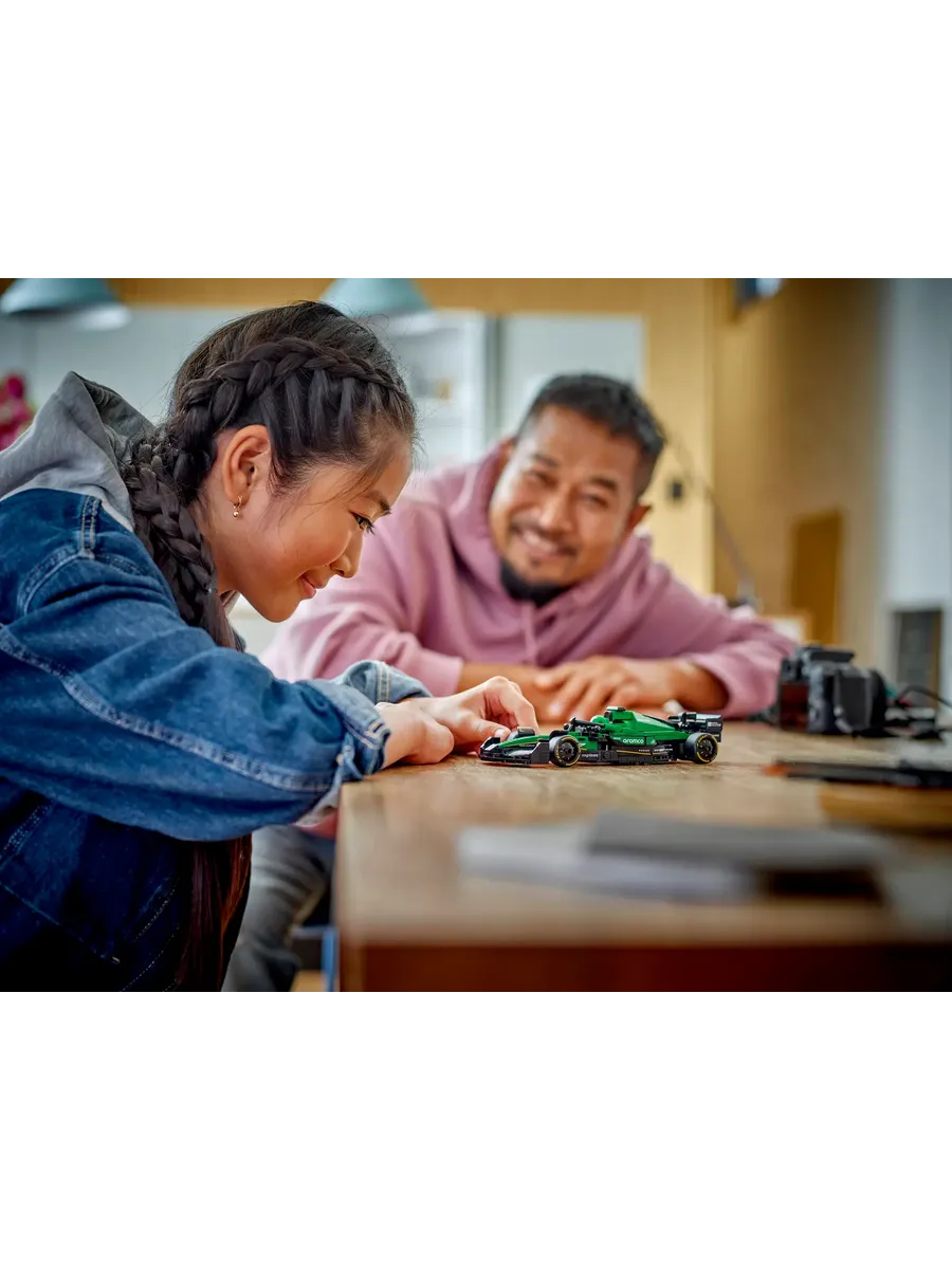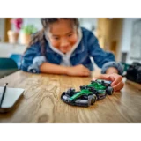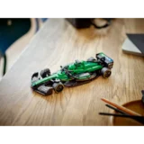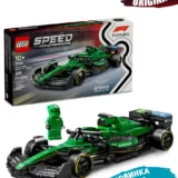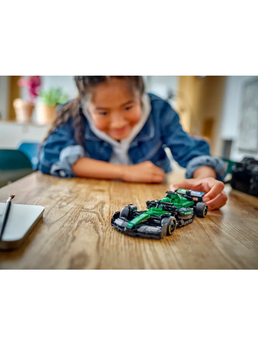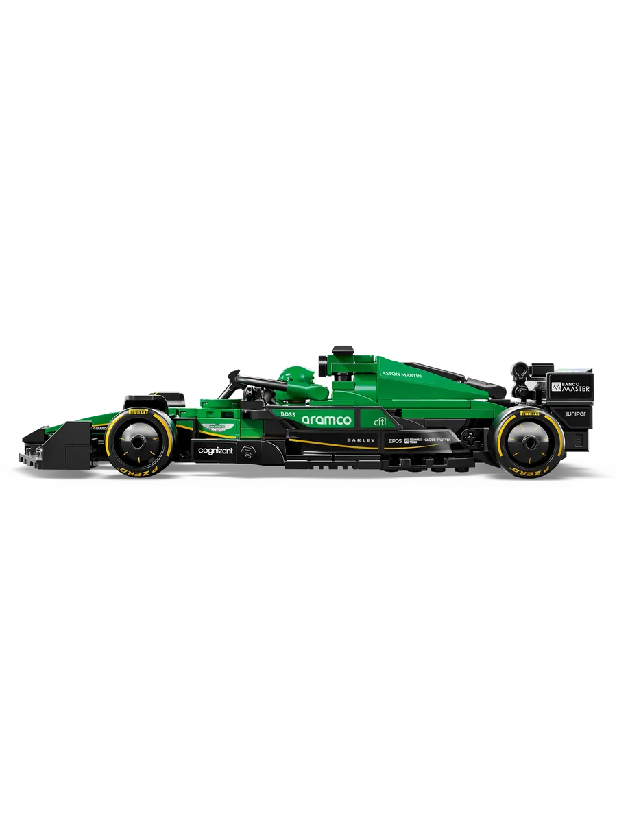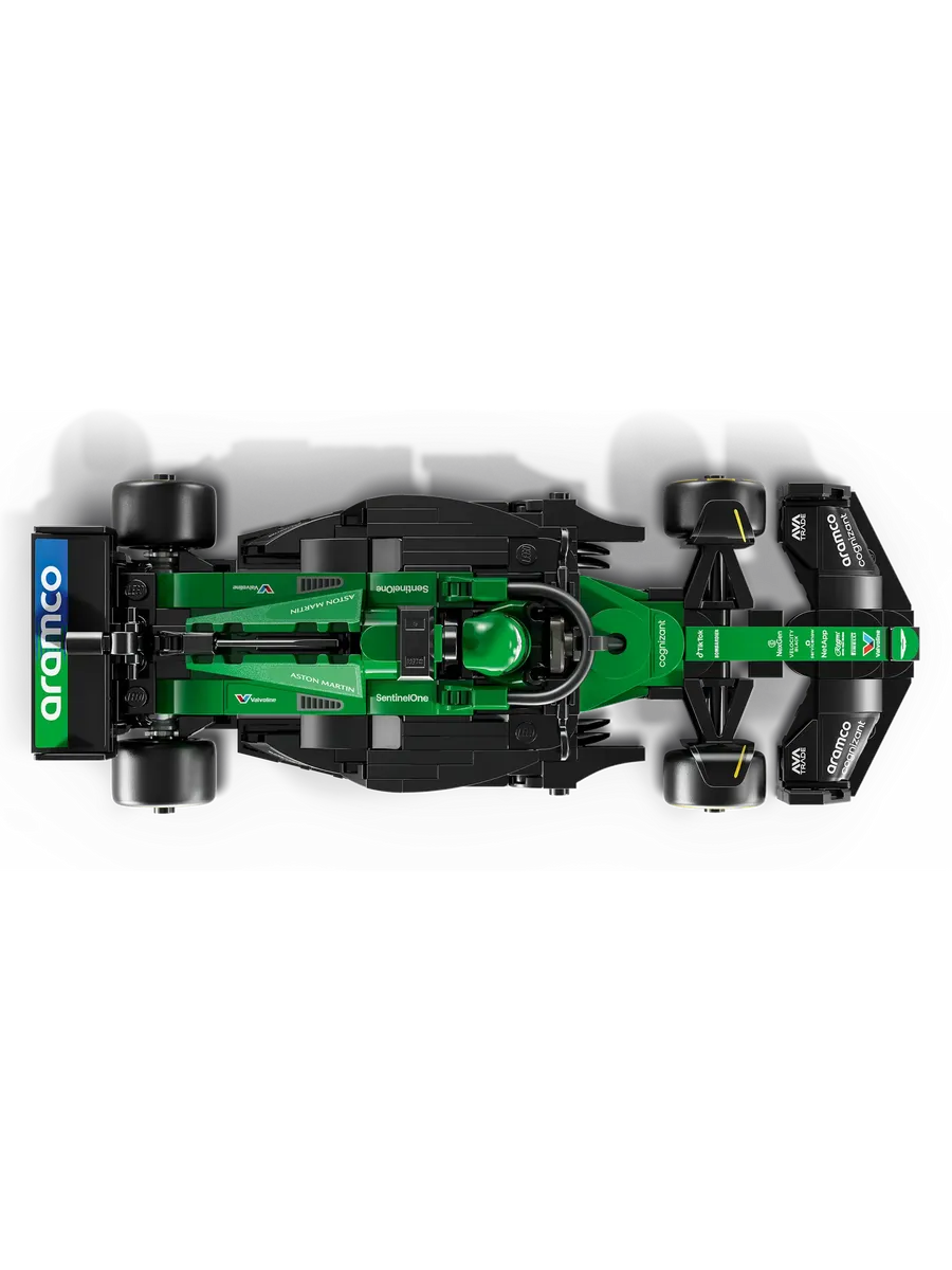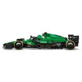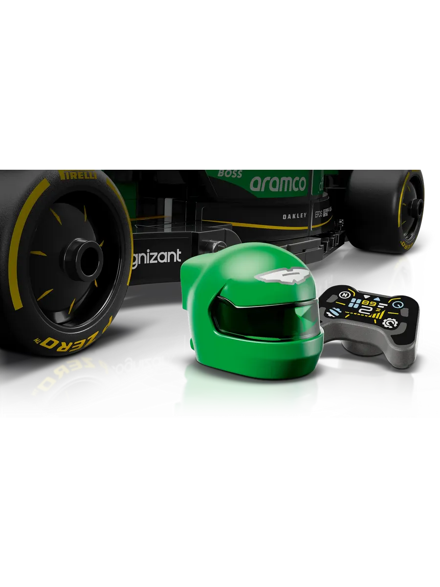 Машина оснащена подвижными элементами, включая открывающуюся кабину с защитной дугой Halo, заднее антикрыло и рычажную подвеску. Детали, такие как наклейки спонсоров и широкие задние шины с логотипом Pirelli, делают модель еще более реалистичной. В комплекте также есть минифигурка пилота в гоночном костюме Aston Martin Aramco F1 и крылатом шлеме, готовая к заездам и соревнованиям.