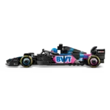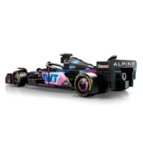 Игрушечный болид оснащен открывающейся кабиной с защитной дугой Halo, задним антикрылом, рычажной подвеской и широкими задними шинами с логотипом Pirelli. В комплект также входит минифигурка пилота в костюме Alpine и крылатом шлеме, которую можно разместить в кабине для реалистичных гоночных сценариев.