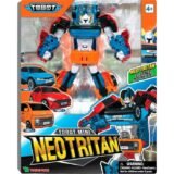 В автомобильно-роботическом режиме TRITAN впечатляет сразу. Он впитывает стили всех троих Тоботов, и рождает нечто новое: массивное, мускулистое, но гибкое. Цветовая палитра сразу даёт понять: перед тобой нечто особенное. Ярко-синие, жёлтые и белые элементы формируют цельный, узнаваемый образ, как код супергероя. Даже просто в машине он выглядит не как один транспорт, а как команда, двигающаяся как одно целое.