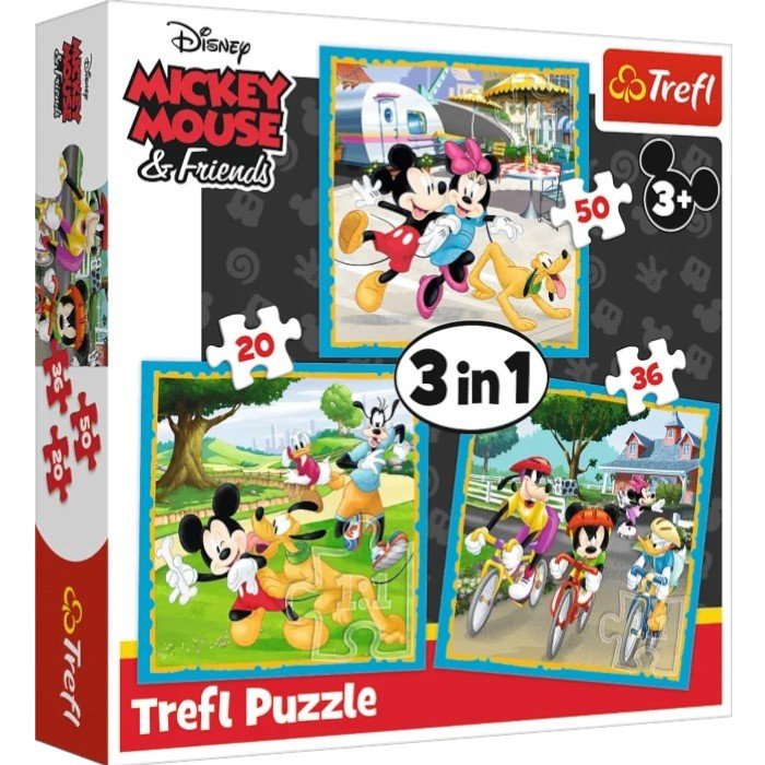 Откройте дверь в добрый и весёлый мир, где правит харизма, озорство и дружба — с набором пазлов «Микки Маус» от Trefl. В этот волшебный комплект входят три сцены, наполненные атмосферой радости, движения и любимых героев. На каждой из них — знаменитый Микки с Минни, Гуфи и Плуто, в неповторимом ретро-стиле с современной подачей, который одинаково восхищает и детей, и их родителей.