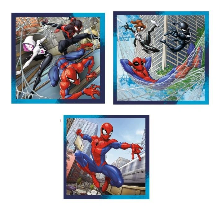 Собирая эти пазлы, ребёнок буквально ощущает движение и ритм города: шум улиц, мигающие огни, высотки, по которым скользит наш герой. Каждая деталь тщательно прорисована: костюм Человека-паука с характерным узором паутины, выразительные глаза маски, динамичные позы в прыжках и акробатических трюках.