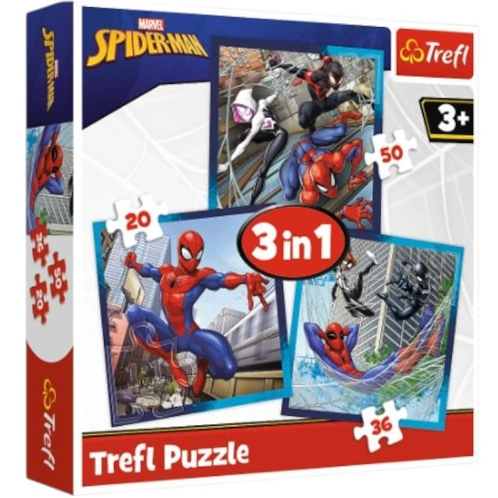 Этот набор — полная супергеройская энергия на столе! Три пазла разной сложности позволяют ребёнку погрузиться в динамичный мир Нью-Йорка, где Человек-паук мчится по крышам, спасает город и показывает невероятную ловкость и силу.